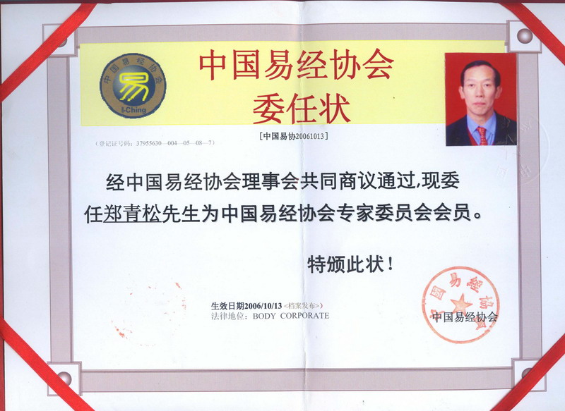 鄭青松老師委任為《中國易經協會》 專家會員,查看大圖>> |